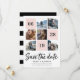 Announce your upcoming nuptials with these chic blush pink and black save the date cards featuring six of your favourite square photos and your wedding date in a gridded layout. "Save the Date" appears beneath in a fresh, casual handwritten script brush marker typeface. Personalise with your names, wedding location and website or other information in rich black. Cards reverse to wide horizontal stripes in black and white.