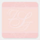 Soft petal Blush with ornate script initials, pillow embossed look overlay.