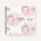 Romantic girly personalised notebook with blush watercolor background and seamless patter illustrations in stencil black. Your own monogram is in the right centre and pairs with illustrations wonderfully.