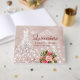 Elegant blush pink marble with sparkle diamond dress and tiara, string lights and flowers bouquet making a chic quinceanera birthday guest book. ++++++++++ Suitable for girly glam 15th birthday princess parties.