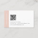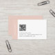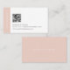 Eyecatching modern design has a minimalist feel with a chic pop of colour. Business cards feature your name along the left side, with three lines of contact information to the right, along with a customisable QR code. Cards reverse to solid blush millennial pink with your name or choice of custom text centred in modern white lettering.