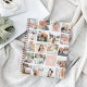 Customise this spiral notebook with 19 square photos arranged in a grid collage layout, with your single initial monogram on a blush pink square at the lower right. Back cover has tone on tone stripes in millennial pink.