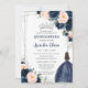 Blush Navy Blue Floral Princess Silver Quinceañera Invitation
