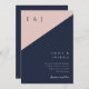 Blush Navy Blue Modern QR Code Photo Wedding Invitation