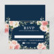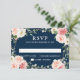 Blush Navy Floral Geometric Botanical Wedding RSVP Card