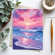 Blush Ocean Sunset Waves Watercolor Postcard