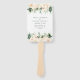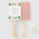 Blush, peach floral + foliage wedding hand fan. Elegant floral watercolor design and beautiful script calligraphy. floral wreath wedding invitation. Soft muted tones add a calm elegance to this wedding suite.