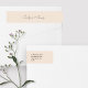 Chic and elegant wedding wrap-around address label sticker, featuring couple names in a contemporary set of blackish fonts against a soft blush peach background. This item forms part of a wedding suite containing invitations and stationary in a variety of neutral mix and match items. .