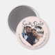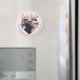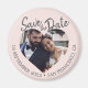 Blush photo modern script save the date magnet featuring a centered heart-shaped photo area with soft blush tones and hand-lettered script text. This design highlights your engagement photo while clearly sharing the wedding date and location, making it ideal for couples who want a personal and visually warm announcement. Perfect for weddings, engagement celebrations, vow renewals, or destination events where a memorable early announcement is important. Easily personalize with your details.