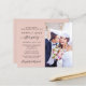 Budget-friendly blush pink elopement or private wedding announcement and reception invitation that features your photo and "Happily Ever After Party" in a mix of simple typography and a chic script with swashes. Personalise your party or reception details and add your names in a signature-like script. On the back, input the URL address of your wedding website to generate a QR code that your guests can scan to RSVP online.