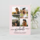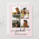 Announce your graduate’s achievement in style with this modern blush pink photo collage graduation announcement. Featuring four customisable photo slots, elegant script typography, and soft sage tones, this design perfectly blends sophistication and personalisation. Ideal for sharing memories and celebrating this milestone with friends and family.