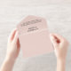 This minimal Light Blush Pink wedding all in one invitation is perfect for an elegant wedding. The design features a simple greenery silhouette in light slate S Blue with classic minimalist style. Hand write your guest addresses on the back of the folded invitation, or purchase the coordinating guest address label stickers (sold separately).