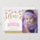 Blush Pink And Gold 1st Birthday Invitation with faux gold glitter confetti dots and pretty calligraphy fonts. A perfect Way to announce a 1st Birthday Party