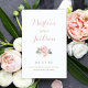 A single blush pink peony with delicate greenery creates a sweetly romantic ceremony program. Your names appear in warm gold script against a clean white background, with the soft bloom adding an elegant focal point. Inside pages are fully customizable for your bridal party, ceremony order, and a personal thank you message on the back cover. Programs are printed on text-weight paper and arrive flat, requiring a simple center fold.