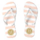 Blush Pink and Gold Preppy Stripes Monogram Thongs