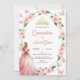 Celebrate your special day in style with this Blush Pink and Gold Quinceañera Invitation. Featuring a regal gold crown, delicate flying butterflies, and a sophisticated gold border with soft pink roses, this elegant design also showcases a girl in a flowing blush pink gown, adding a princess-like touch. Perfect for floral, butterfly, or princess-themed Mis Quince Años celebrations. BRT342