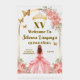 Letrero Cartel rosa con dorado para Quinceañera. Elegante letrero de Bienvenida para quince años. Cartel elegante acrilico para quinceanera.