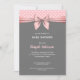 Blush Pink and Grey Polka Dot Bow Baby Shower Invitation.