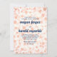 Pink and blush confetti dots rehearsal dinner invitation with navy blue text.