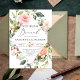 Blush pink and peach floral and gold boho wedding invitation