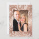 Trendy blush pink and white roses wedding invitation with accents of rose gold designed to be quickly and easily customised to your event specifics. The photo on the reverse is optional. If you would rather remove it, scroll down to the bottom of "Personalise this template" and click on "Edit Using Design Tool". In the Design Tool you can edit, scale, delete or move any text or design elements you wish.