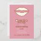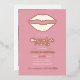 Cool Birthday kiss lips invitation in accents of blush pink and rose gold customisable to your event specifics.
