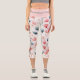 Blush Pink and Sage Botanical Floral Pattern Capri Leggings