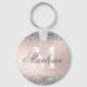 Elegant Silver Glitter and Faux Blush Pink Foil Monogram Keychain with a customisable calligraphy script name and bold monogram template. A cute and girly initial keychain that would make an adorable personalised gift for bridesmaids, birthdays, new home housewarming party, etc.
