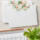 A feminine blush pink and white floral bouquet makes this personalised luxurious linen envelope a lovely addition to your mailings. Not only are they uniquely stylish, the quality of the linen paper sets them apart. They make a lovely gift or special addition to your personal stationery. Imagine how pleased anyone would be to receive such a beautiful piece of mail with beautiful watercolor flowers making it stand out from all the other ordinary mail. The back flap of the envelope has a text template to personalise with your name and return address. The name is in an enlarged script typeface to accent its beauty and style.