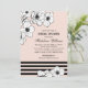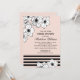 Elegant and beautiful bridal shower invitation design features an organic floral border of black and white anemones accented by chic horizontal black stripes on a blush peachy pink background. Personalise the invitations with custom text.