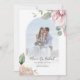Introduce your special day with our Elegant Save the Date Card, featuring a classic arch photo template and simple floral wedding design. The classy chic romantic aesthetic combines handwritten calligraphy script with formal blush pink greenery and a simplistic grey backdrop for timeless sophistication. The unique minimalist design includes a convenient QR code linking to your website online for seamless access to details and information, ensuring a perfect balance of elegance and modern functionality.