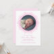 Announce your little one in the sweetest way with this blush pink newborn birth announcement featuring a delicate ornamental frame and soft script typography. The circular photo layout beautifully highlights your baby’s portrait, while the clean, minimalist design keeps the focus on what matters most.