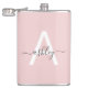 Blush Pink Black Monogram Girly Bachelorette Party Hip Flask