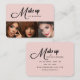 Blush Pink Black Script 3 Photo Makeup Business Card
