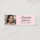 Blush Pink Black Script Photo Makeup Business Card. Elevate your brand with this elegant blush pink script makeup artist business suite. Designed for the professional MUA, this editable template features a modern minimal font and custom photo logo placeholder. Easily personalize this stationery set with your monogram, business name, and contact info. Perfect for creating cohesive branding that leaves a lasting impression.