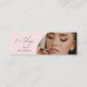Modern stylish Blush Pink Black Script Photo Makeup mini sized Business Card with trendy script.