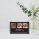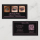 Elevate your professional image with this sleek black business card designed for the modern makeup artist. A delicate blush pink border adds a touch of understated elegance. Three photo spaces across the top let you showcase your artistry or favourite client looks. On the back, list all your social media and add your URL to the QR code. This card promotes your beauty brand with style and confidence.