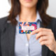 Blush pink blue abstract modern floral ID badge
