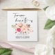 You can honour the life of your loved one by planting seeds in their memory. This design features an elegant handwritten typography script wording that says "forever in our hearts" with heart paired with a serif black text and a vibrant luscious watercolor blush pink floral arrangement and can be personalised with the name of the departed loved one and the birth year and death year. You place a seed packet inside the envelope but you will need to buy those seeds separately.