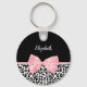 Blush Pink Bow Black White Leopard Print Pattern Key Ring