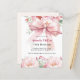 A white background, decorated with a large pink bow and pink flowers. Personalise and add a name and party details.