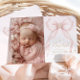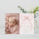 Blush Pink Bow Pearls Gold Cross photo Baptism Invitation