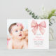 Blush Pink Bow Photo First Birthday Invitation
