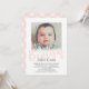 Minimalist baptism invitation in with baptism written in a blush pink brush script. Personalise with a photo of your baby. The back features a blush pink plaid pattern.