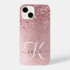 Blush Pink Brushed Metal Glitter Monogram Name iPhone Case