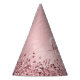 Easily personalize this trendy chic paper party hat design featuring pretty blush pink sparkling glitter on a blush pink brushed metallic background.
