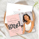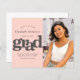 Make sure all your friends and relatives will be able to celebrate your graduate’s milestone graduation! Send out this stunning, simple, modern, personalised photo “Save the Date” budget announcement for an event to remember. Bold, graphic, soft grey typography overlays a blush pink background. On the right hand side, add a photo of your choice. Personalise the custom text with your graduate’s name, class year and date. Your custom message and a blush pink graduation cap icon adorn the back. Matching invites, thank you cards, cap toppers, napkins, plates and other graduation goodies are also available in this trendy and stylish collection. Guaranteed to add stylish fun to their special occasion!
