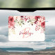 This elegant personalized air freshener features a monogram and first name in modern pink and burgundy script. A watercolor arrangement of blush pink and burgundy flowers and greenery adorns the top border.