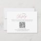 Add a touch of romance to your special day with this elegant wedding RSVP card in a minimalist blush pink design. Featuring classic calligraphy script and traditional typography, it embodies timeless charm and traditional elegance. The QR code template provides a modern RSVP option, paired with the thoughtful kindly reply wording. This stylish guest response card complements a classy formal design and pairs perfectly with your matching stationery suite for a seamless, elegant presentation.