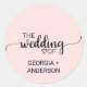 These blush pink calligraphy wedding envelope seal stickers are perfect for an elegant wedding. The design features a romantic and sweet flowing cursive font on a lovely and delicate light ballet pink background. Personalise the label with the names of the bride and groom.
